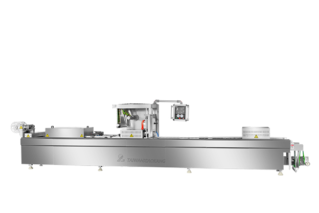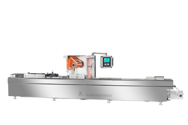 氣調(diào)盒式真空包裝機工作原理: 先將產(chǎn)品放在托盤里,再將托盤放入設(shè)備的放料區(qū),托盤隨著鏈條的向前運行進入到封口模具里 ,模具上升,在封口模具里將上膜附在托盤上,先抽真空(可根據(jù)用戶產(chǎn)品包裝要求,在抽象真空 的基礎(chǔ)上,充氮氣或混合氣體進行包裝)封口、(上膜和托盤封在一起)沖切,最后排氣,降膜, 包裝好的產(chǎn)品隨著鏈條繼續(xù)向前運行,從出料口出料。設(shè)備還附加了光電跟蹤對齊彩膜系統(tǒng),為用 ...